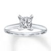 A dazzling 1 carat princess-cut diamond sparkles at the center of this impressive solitaire engagement ring for her. The band is styled in 14K white gold.